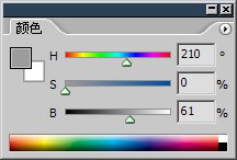 如果要选择灰度,只需要将S放在0%,然后拉动B滑杆就可以如同灰度模式那样选择了。如下右图。注意,HSB方式得到的灰度,与灰度滑块K的数值是不同的。我们在Photoshop中选择灰度时候,应以灰度滑块为准。