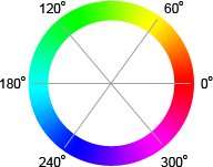 在HSB模式中,S和B的取值都是百分比,唯有H的取值单位是度,这个度是什么意思?是角度,表示色相位于色相环上的位置,将我们前面学过的色相环加上角度标志就明白了。